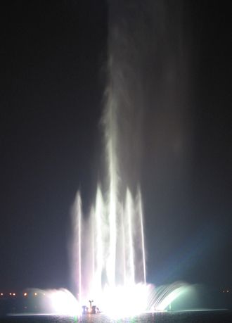 Spray water height is generally above 100 meters, it has its own ancillary water supply equipment, steady flow regulator device, nozzle device, the use of large flow, high-lift centrifugal pump as the raw water pressure motivation, high pressure metal pipe to the water Sprinklers, from the single hole, high-speed jet spout jet up the sky, its magnificent, Magnificent spectacular.