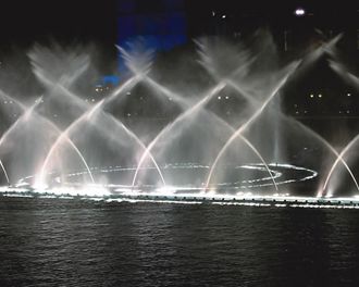 音乐喷泉施工设备的水质色度不超过15度,并不得呈现其它异色,混浊度不超过10度;不得含有肉眼可见物。水中杂质含量不大于0.1% ,杂质粒度不大于0.2毫米,氯离子含量不超过400mm/L,PH值在6.5~8.5范围内,同时还要在注意喷泉设备的用水的循环运用,当喷嘴有要求时,循环水应经过滤处理。循环系统的补充水量应根据蒸发、风吹、渗漏、排污等损失确定,一般宜采用循环流量的5%~10%。