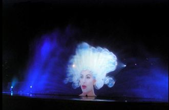通过高压水泵和特制的水幕发生器将水自下而上高速喷射,形成雾化的一片白色水幕,以此为投影背景,将计算机信号及其他一些视频信号通过投影设备投射在水幕上,即形成水幕电影。